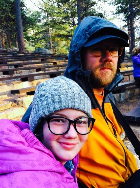 Staying warm at the ranger talk @ Rocky Mountain National Park