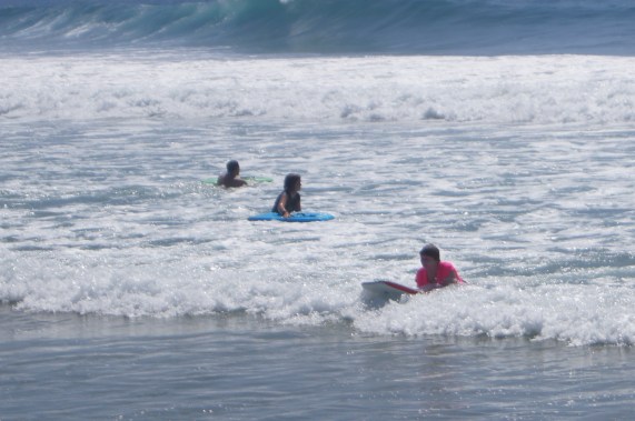 Grandma didn’t stay dry for long (in pink)